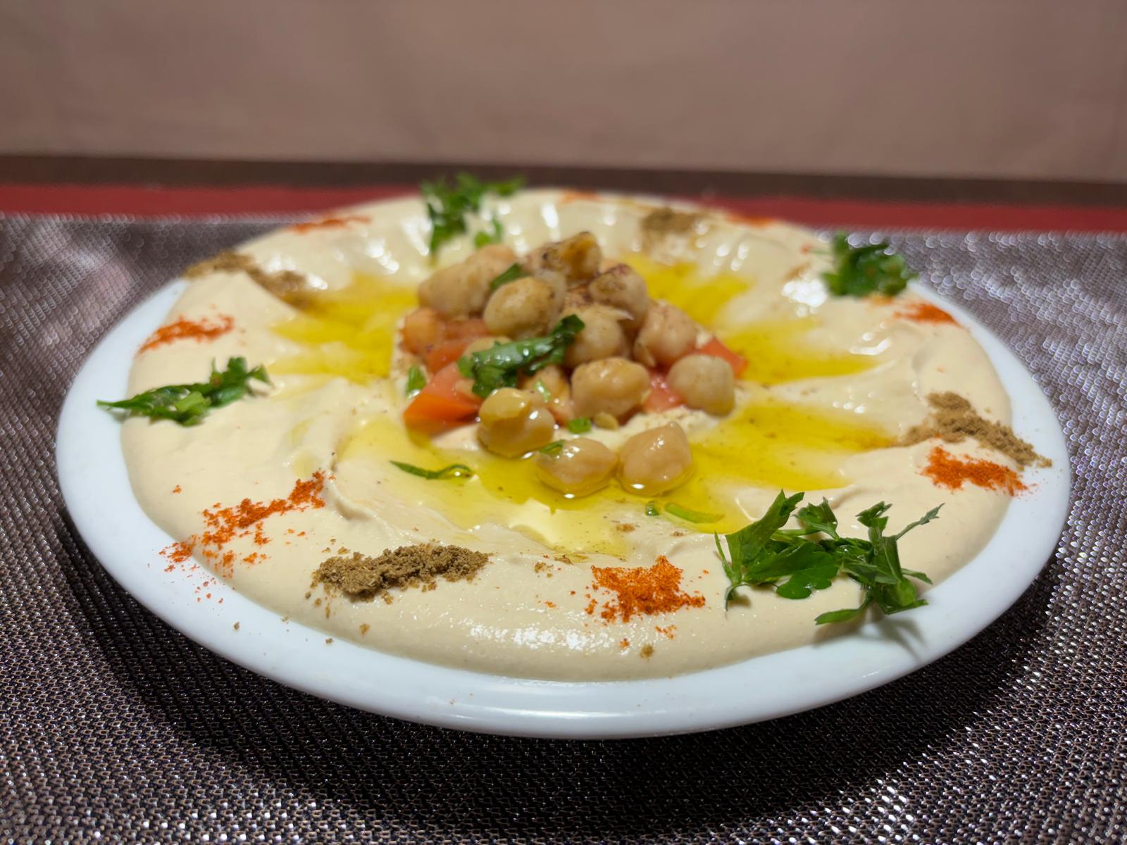 Roasted beef with salad, falafel, hummus and another cream of your choice.