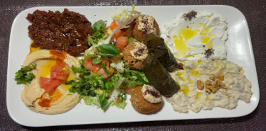 Assortment of Lebanese creams with salad, falafel and warak inab.